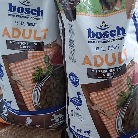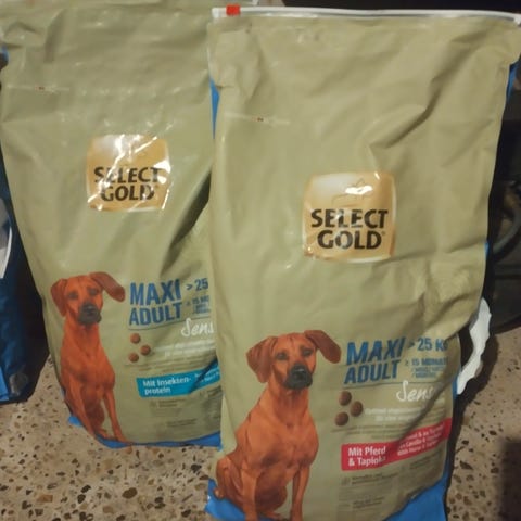 Da vores hund ikke vil spise det mere, 2X12 kg uåbnet 1X 9,5kg åbnet.