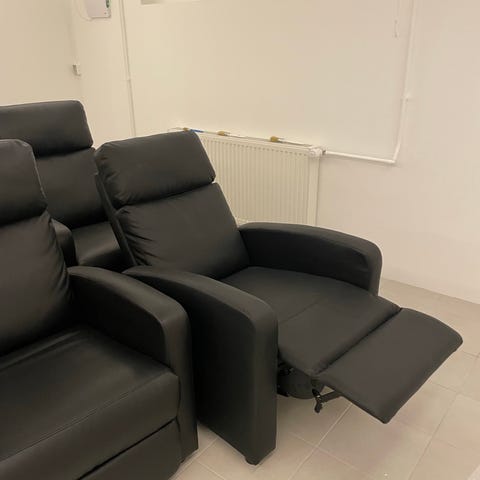 Flot hvilestol i sort læder sælges grundet pladsmangel. Kun brugt i 1 1/2 år.