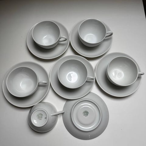 6 stk. Pillivuyt Cecil tekopper (29cl) med tilhørende underkopper.