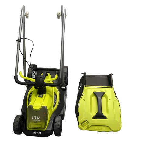 Ryobi RLT1830M trimmer med 18V batteridrift. Trimmeren har en gul farve og er designet til effektiv græsklipning i mindre haver og områder.