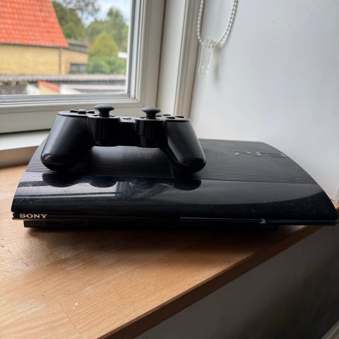 Konsollen er sort, slim og egnet til afvikling af Playstation 3 spil.