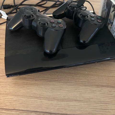 Sony Playstation 3 spillekonsol leveres med en controller og strøm og ladekabel.