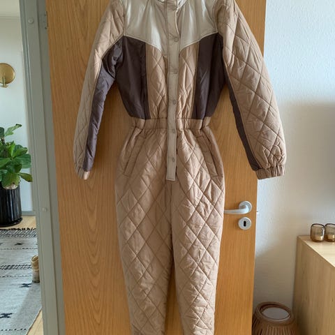 Global Funk termodragt/ flyverdragt i blå farve, størrelse L til kvinder. Fremstillet i polyester materiale. Designet til udendørs brug med lynlås foran og quiltet mønster.