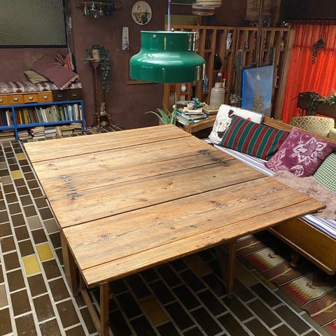 Foldebord i massiv fyrtræ fra Nyt i Bo. klappen 55x69cm. 3cm tyk. Meget god stand.