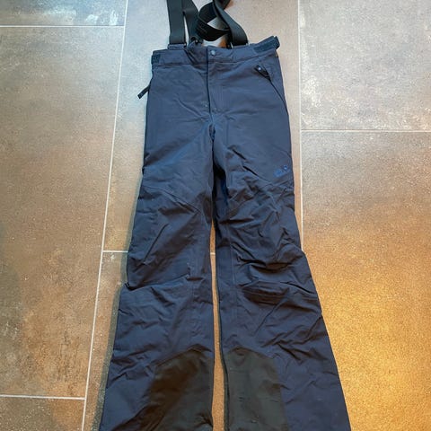 Jack Wolfskin kvalitets skibukser/ overtræksbukser i sort. Bukserne er designet til vinterbrug og skiløb med isolerende materiale og vindtæt funktionalitet. De har justerbar talje og forstærkede sømme for øget holdbarhed. Velegnet til udendørs aktiviteter i koldt vejr.