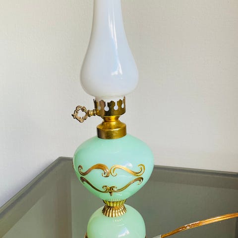 Rigtig fin gammel opaline glas lampe med malet dekorationer.