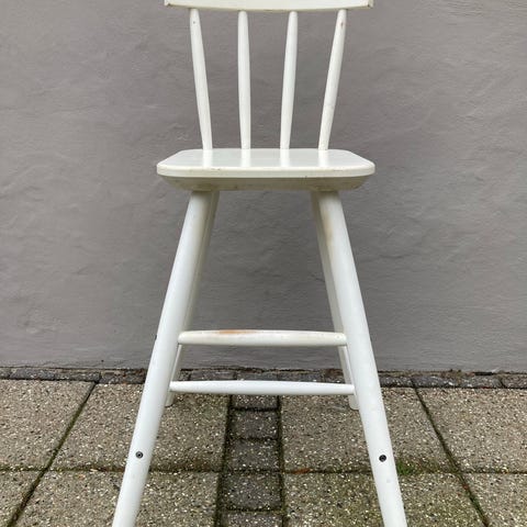 Agam højstol fra IKEA til børn i sort. Højstolen har en siddehøjde på 52 cm, en samlet højde på 79 cm, og sædets dimensioner er 28 x 35 cm. Fremstillet i træmateriale.