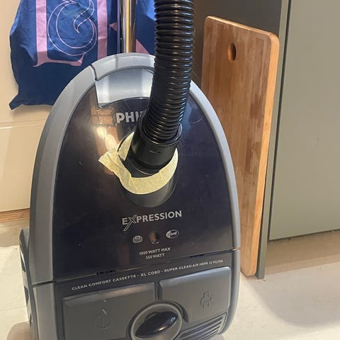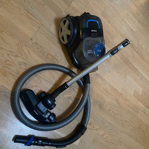 super god støvsuger 1800 watt, hepa filer og 3 støvsuger poser og 2 møbelmundstykker, teleskop rør, kun brugt meget lidt og suger fantastisk