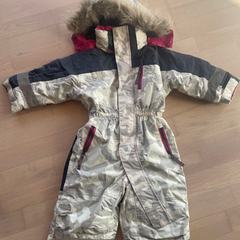 FLOT Alpine flyverdragt str 2 år - ikke brugt ret meget - elastik i livet - elastikker ved fødderne - hatten mangler desværre, så prisen er sat derefter.