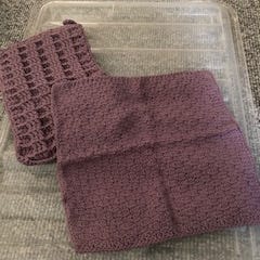 Hjemmestrikket, 4 stk. køkken håndklæder. pr. stk. kr. 15,00 + 2 sæt grydelapper. Pr. stk. kr. 20,00. Køb af alle kr. 90,00