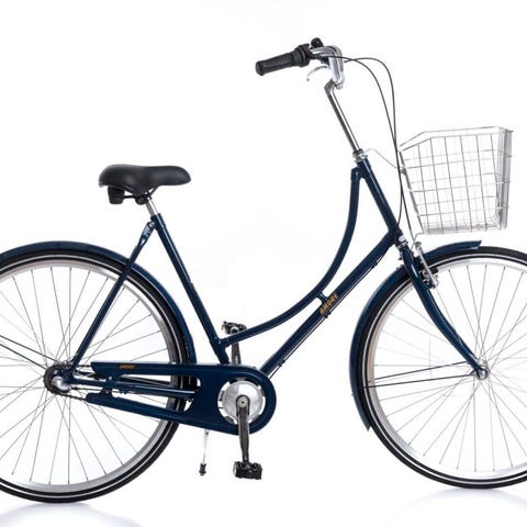 Den har 3 gear, håndbremse, pedalbremese, stor kurv, støtteben, ringeklokke og låset med 2 nøgler følger selvfølgelig med.