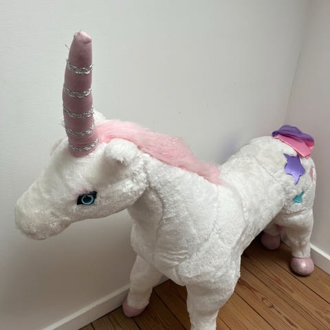 Plastic enhjørning med 5 bolde. Klem på enhjørningen, når den har en bold i munden, for at få den til at skyde.