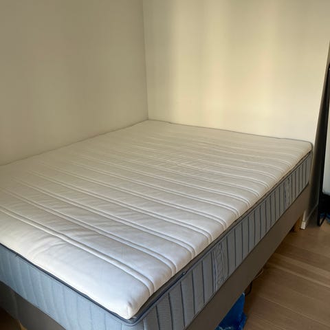 Ikea boksmadras samt topmadras i fin stand. Sengegavl medfølger. Åben for bud ved hurtig afhentning.