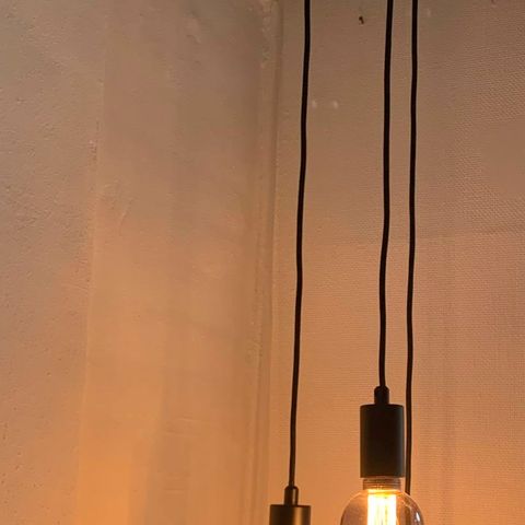 3 separate lamper i forskellige højder som kan reguleres. Store flotte dæmpet pærer følge med. Købt i Selta