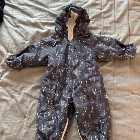 Reima flyverdragt til børn i størrelse 110. Designet til både drenge og piger (unisex). Flyverdragten har en hætte og lynlås foran, samt reflekser for øget synlighed.