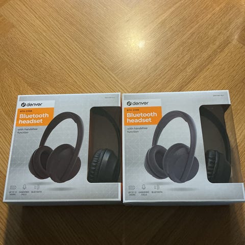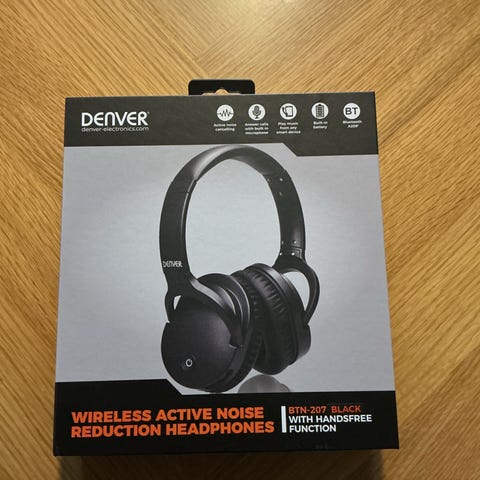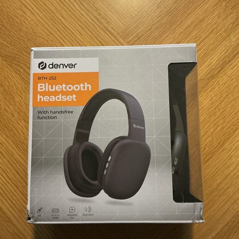 Denver Bluetooth headset btn-210 med trådløs forbindelse. Hovedtelefonerne har et design med over-ear ørekopper og justerbar hovedbøjle. Produktet leveres i original emballage.
