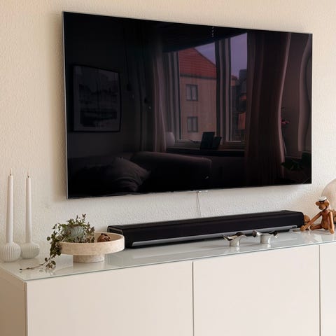 Det er et Hisense 55” 4K QLED TV (120 hz), med nypris på 10.000kr. Tv’et har fået en calibration til en værdi af 2.000kr, og så har jeg selv købt et stativ fra Sinox i børstet stål til en værdi af 2000kr.