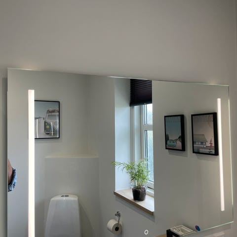 Touch LED-spejl Sirius 4 købt i Bauhaus i starten af januar. Ved montering kom der desværre en revne i det ene nederste hjørne og vi har valgt at købe et nyt. Spejlet har blot været monteret og derefter taget ned igen.
