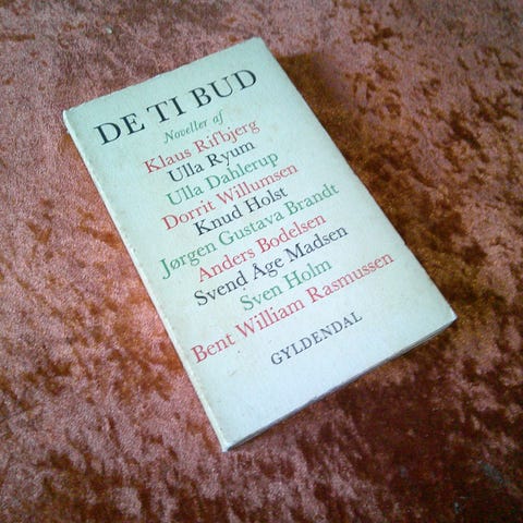 Samtale med et æsel, Per Lange, genre: noveller, Org. hæftet novellesamling med smudsomslag, Gyldendal, 1961, 135 sider.