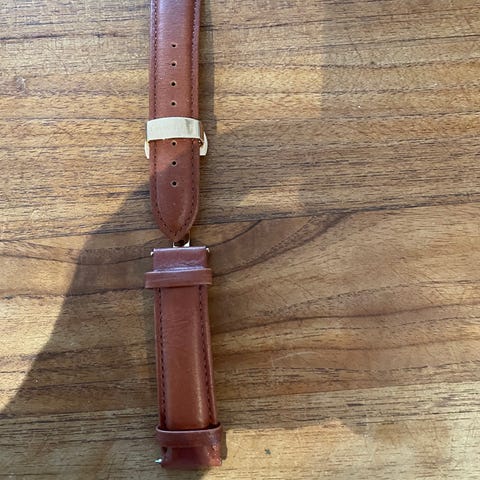 21 mm. Lysebrun urrem i krokodille præget læder med rosenguldfarvet spænde