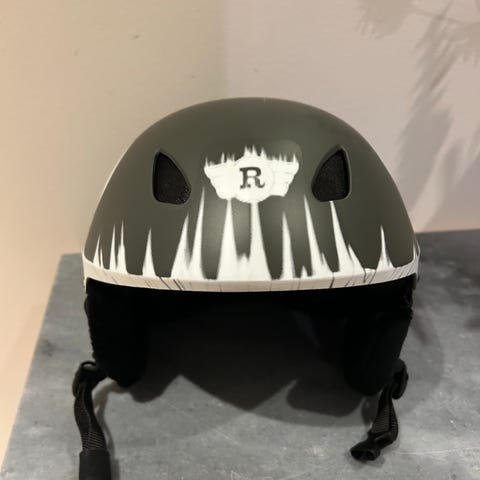 Reebok skihjelm i hvid farve med størrelse 50-51. Hjelmen har ventilationsåbninger og justerbar rem til fastgørelse under hagen. Materialet er robust og egnet til beskyttelse ved skiløb.