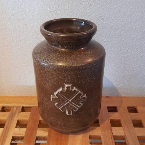 Lille retro fad fra Johgus, olivengrøn med girafmønster.