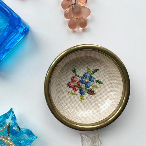 Super smuk skål med blå staffering og blomster motiv med låg sælges