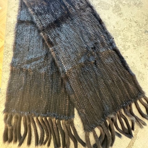 Tørklæde, Mink, str. Ca.158x 14, Sort/brun , Mink, Ubrugt, Smukt halstørklæde i mink