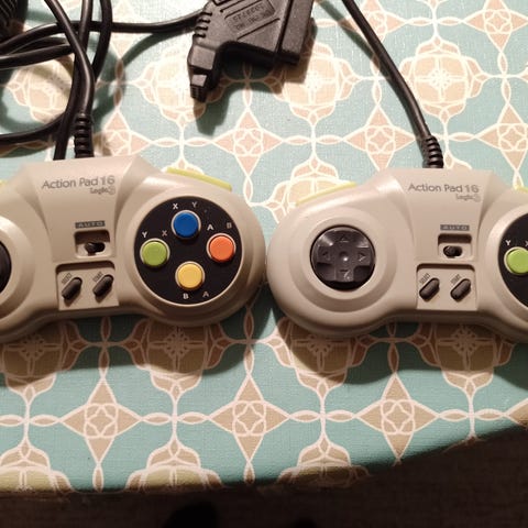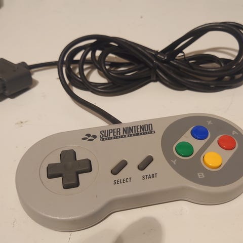 Her sælges 2 x originale Super Nintendo Controllers, de er testet og virker som de skal.
