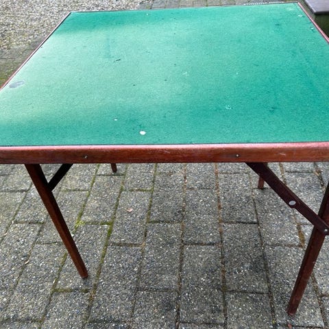 Spillebord i træ med grøn filt overflade