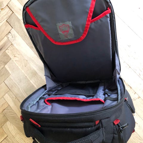 Tasken er ikke brugt meget, så den er næsten som ny, men inderstoffet i det ene rum er trukket i syning, som vist på billede