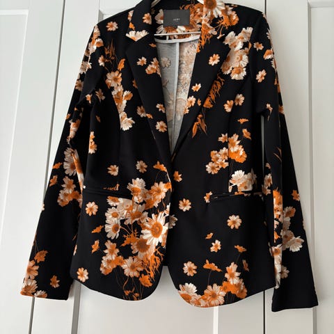 Blot blazer fra Ichi i sort med brun/hvid bladmønster