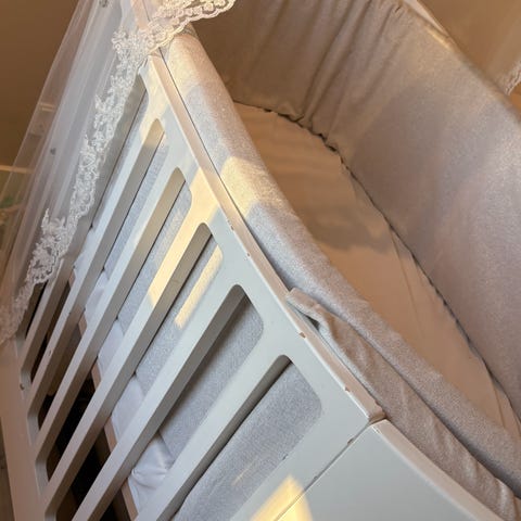 Leander baby og junior seng. Alle dele er der til både baby og junior seng samt ekstra reservedele. Rulle madras fra nsleep til babysengen medfølger. Der følger også leander senge rand med.
