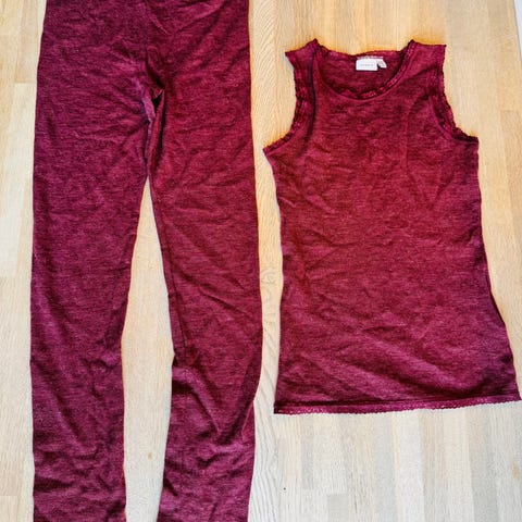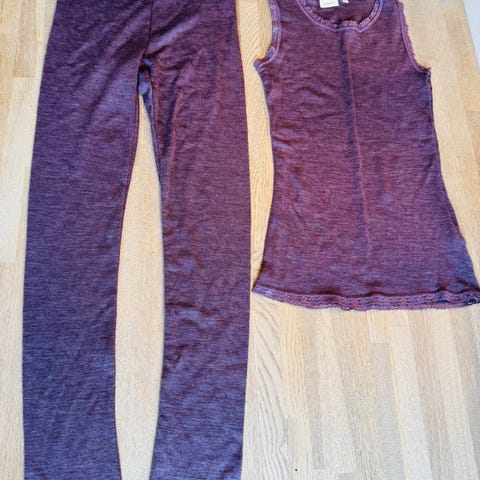 Skiundertøj i uld - trøje og bukser str. 128 - 134
