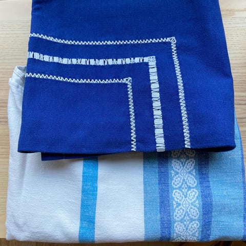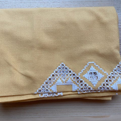 Vævet vintage dug med broderi