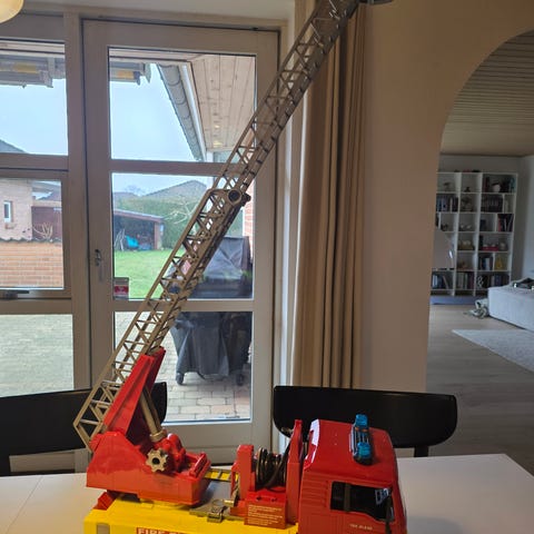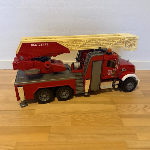 Bruder Brandbil legetøj i rød farve. Modellen har en udtrækkelig stige og flere detaljer, der efterligner en rigtig brandbil.