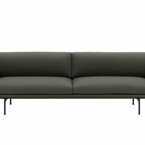 Anderssen & Voll for Muuto. Muuto Oslo Sofa 1-Seater. Betrukket med blåt møbelstof, monteret på mørkerøde ben af stål. H. 78 B. 80 Sh. 40 cm.