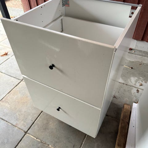 Ikea metod 80 bred modul med 3 mellem maximera og 1 lav top skuffe. Skufferne kører fint. Bagpap skal nok fikses og alt skal tørres over. Fine skuffer.