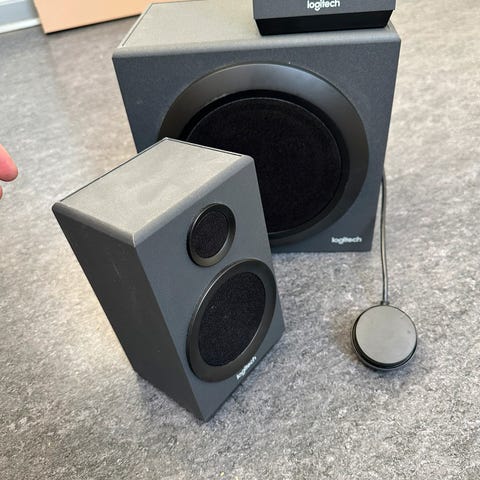 Der er Logitech-opladere med til 2 af dem. Den sidste er der Usb-kabel med adapter med til.