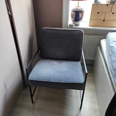 Stoffet under stolen er gået lidt i stykker men det ses ikke. Stolen er brugt ganske få gange. Nypris 1598