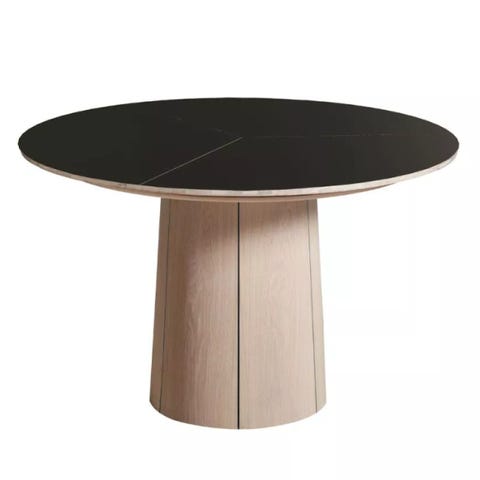 Bordet har en patenteret udvidelsesfunktion som med et let træk i den ene bordende, skyder bordpladerne fra hinanden - og foldepladen der er skjult i soklen kommer til syne, herefter løftes pladen op og foldes ud - forlænges fra 142 cm til 182 cm.