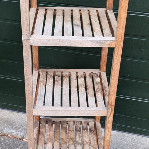 Fin hvidblå reol til køkken eller stue i solidt træ