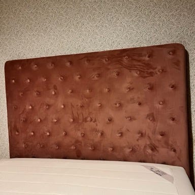 Målene er 240 cm i længden, 102 cm i højden og en dybde på ca. 9–10 cm. Gavlen er professionelt polstret og fremstår yderst velholdt. Den er oplagt til et soveværelse, hvor der ønskes et eksklusivt og bevidst æstetisk udtryk langt fra standardløsninger.