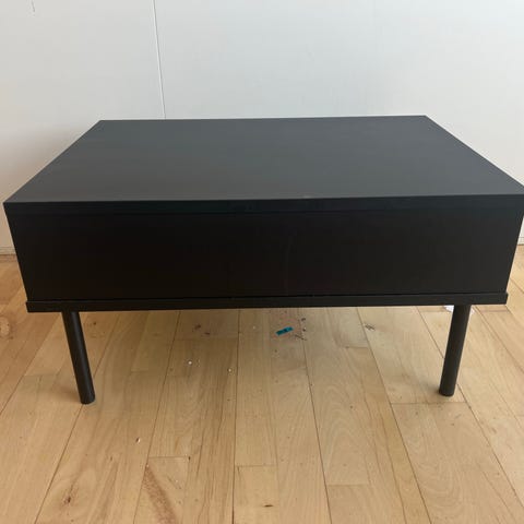 Her er et utrolig lækkert sofabord med plads til opbevaring af fjernbetjening osv nedenunder.