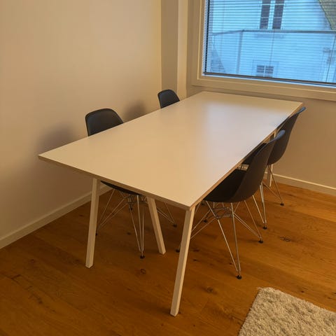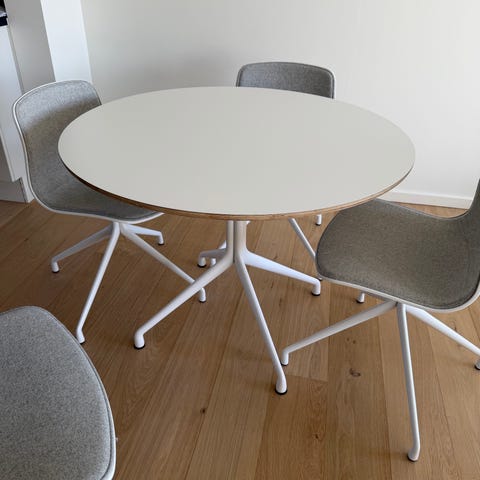Spisebord i hvid surface laminat med 4 ABOUT A CHAIR Hay stole
