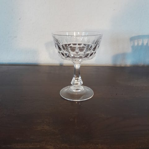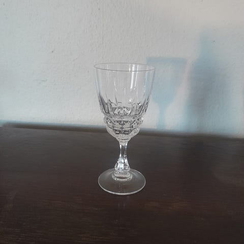 Pompadour likørskåle fra franske cristal d'arc. Glassene er I ok stand der er ingen skår eller afslag og heller ingen glaspest. Der er 4 stk I alt. Prisen er 40 kr pr stk eller tag alle 4 for 150.kr. varen kan sendes på købers regning. Se også mine andre opslag for flere pompadour glas.