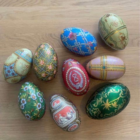 7 metalæg fra Svend Michelsen fra ældre årgange. Alle modeller er udført efter de originale Fabergé-æg.