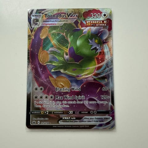 Pokémon Greninja VMAX samlekort med illustration af Greninja i dynamisk kampstilling. Kortet har 310 HP og indeholder angrebene Shuriken Blade og Mirage Barrage. Kortet er en del af Pokémon Trading Card Game og er beregnet til samlere og spillere.
