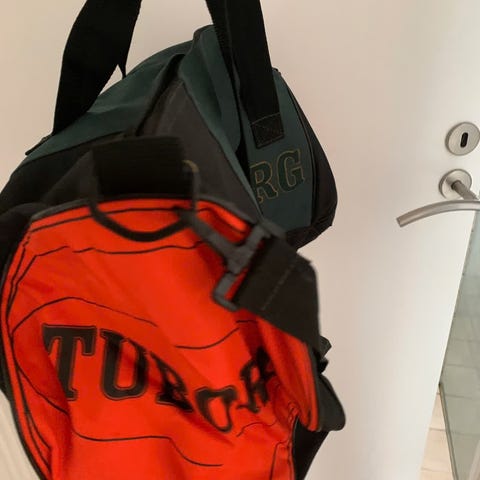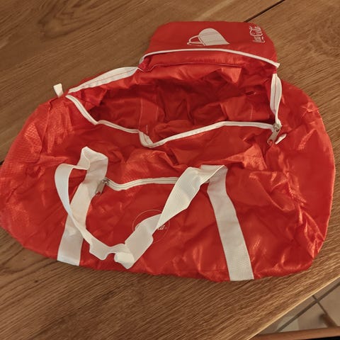 Næsten ikke brugt. Foret med en lomme indvendig. Lomme med lynlås på siden. Fine ketchup flasker på lynlåse. Måler 48 cm lang og 25 cm høj