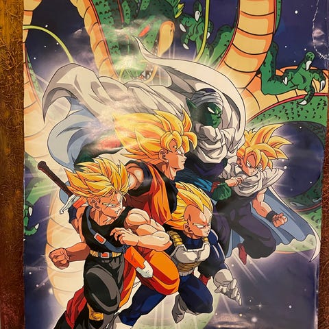 Dragon Ball sengetøj med karakterer og symboler fra serien.